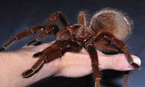 2、红腹捕鸟蛛(Theraphosablondi):这种捕鸟蛛是非常大的,但通常不会踢毛。