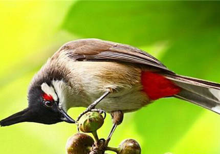 也可以从观察红耳鹎的身体结构区分红耳鹎的雌雄。