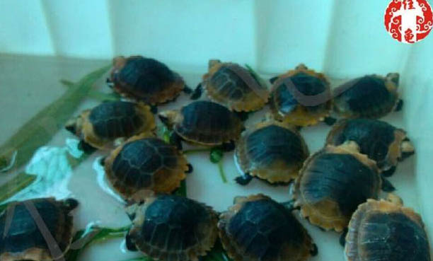 雄龟腹甲凹陷,尾部粗大,雌龟每窝可产下12~15颗蛋,十分多产,幼龟大约3公分长。