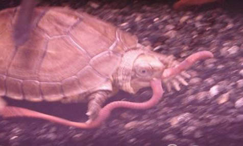 喂食幼龟时要做到少食多餐,防止幼龟涨肚。