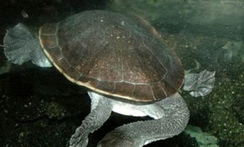 长颈龟最大的特点就是有着长长的脖子哦,与别的乌龟不同,它们不能将脑袋缩入壳中,只能将长长的脖子侧放于背甲和腹甲之间。