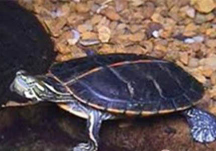西部锦龟是锦龟中最常见的,背甲为橄榄绿,腹甲一般为橘红带暗色花纹。