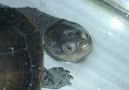 体形:特征43cm~45cm奇怪的就是它的颈和头,作用就是:1.迷惑猎物2.感应猎物3.吸食猎物,这就是它“刘海”的重要的作用,它的头颈的另一个作用,可以作为吸尘器,这种龟可以很快的扩张它的头颈,张开嘴,把鱼吸入它的嘴里,由于这种独特的吃法,所以它的下巴不是很有力量。