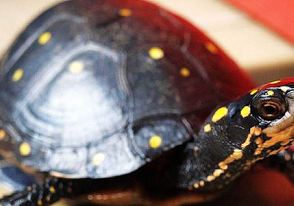 星点水龟雄性星点水龟有一个棕褐色的下巴,棕色的眼睛和一条又长又粗的尾巴。