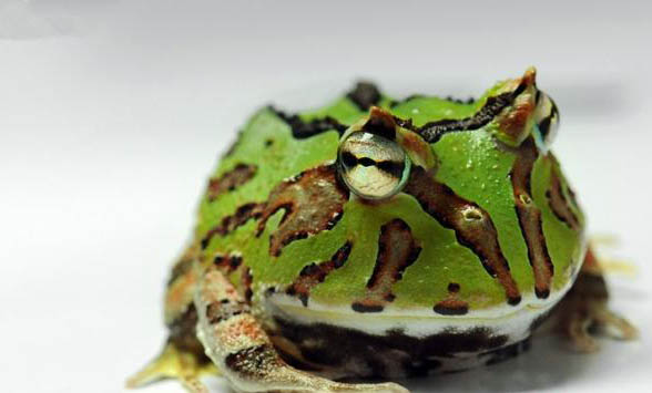 霸王角蛙是很难养的一种角蛙,这种角蛙体型很大,性情凶猛,咬合力强,能轻易咬伤手指,也会食用同类。