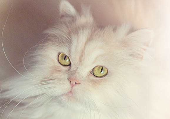 在诸多品种中,以一只蓝眼、一只黄眼,雪白被毛的狮子猫最为珍贵。