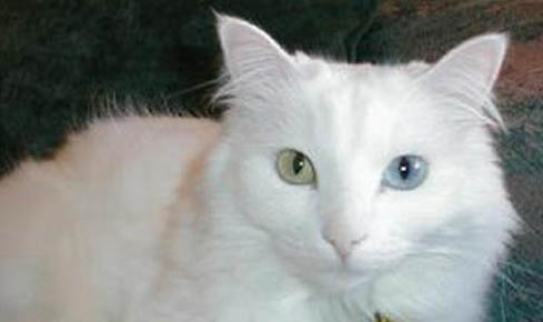 安哥拉猫全身有绸缎般的长毛,有褐、红、黑、白四种毛色,通常认为白色的安哥拉猫最纯正。
