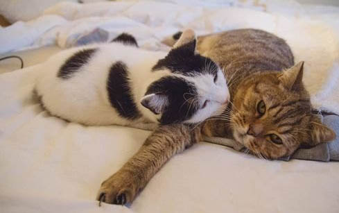 一般在小猫感到周围环境安全、舒适时,就会出现踩奶的行为。