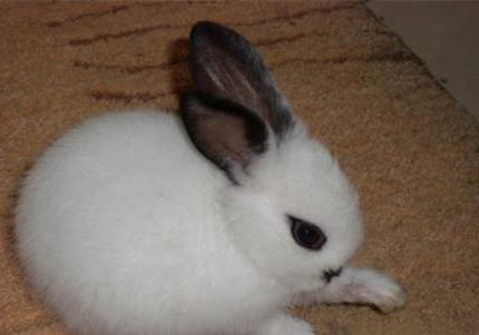 侏儒海棠兔有两种颜色,一种通体白色,眼睛周围有一圈黑毛,像一个黑眼圈,另一种颜色则是通体白色,胡子和耳尖部位为褐色,毛色色彩鲜明,性格温顺,是受欢迎的宠物兔类。