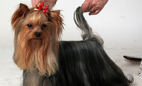 所以这个时候就需要家长能采取强制性、机械式的训练方式,来引导约克夏一步一步的完成训练动作。