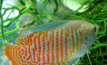 3、喂食:丽丽鱼对饵料的要求不高,饲养者可以选择一些合成的饲料搭配动物性饲料一起投喂。